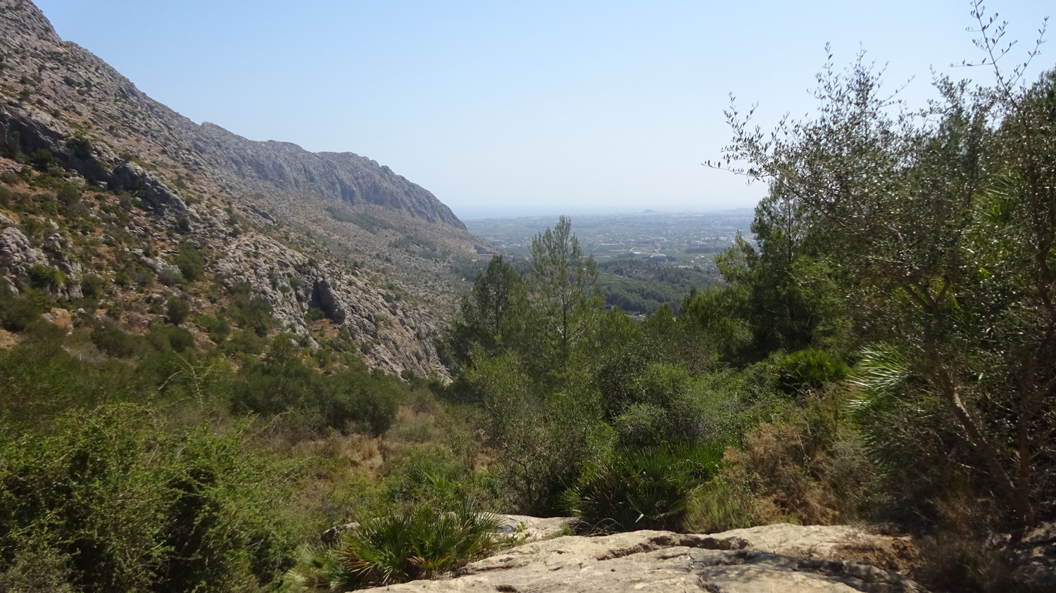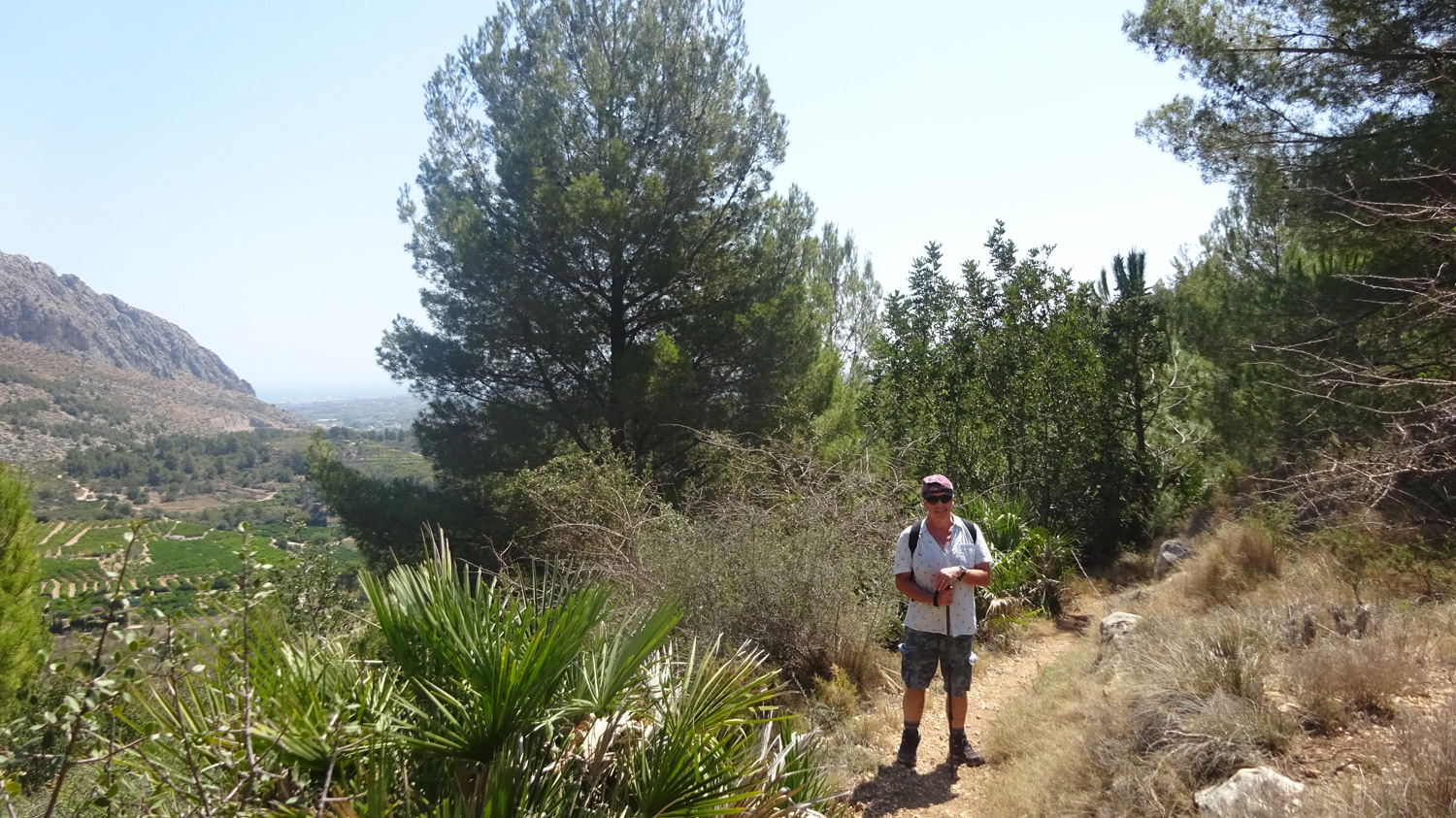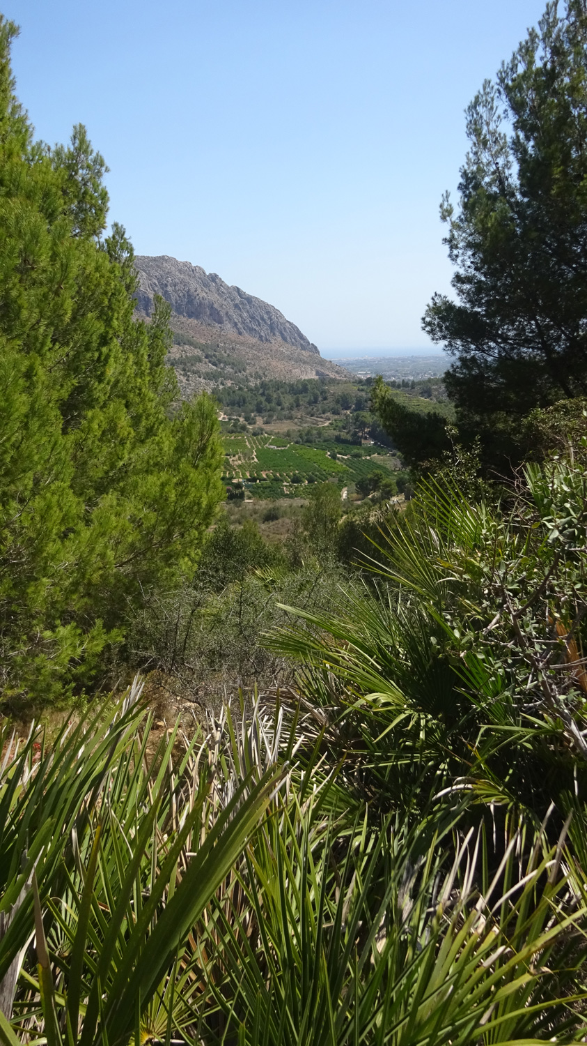 A hot, sweaty walk today up to the saddle from Beniarbeig. It was our hottest walk in a while although some nice sheltered bits coming back down. On the path down, we have often wondered where the path leads to when the path forks off to the right. This time we decided to give it a go and it took us back to the main road, near to the dog in the enclosure.