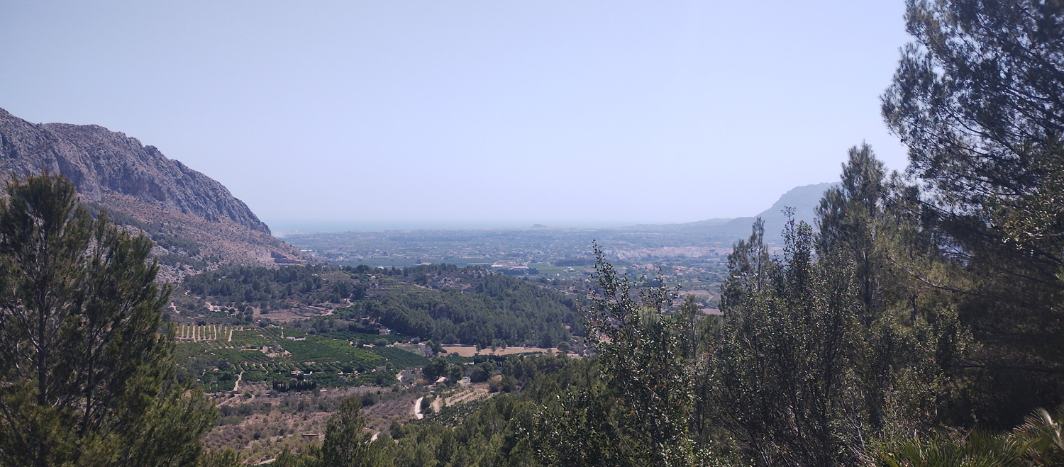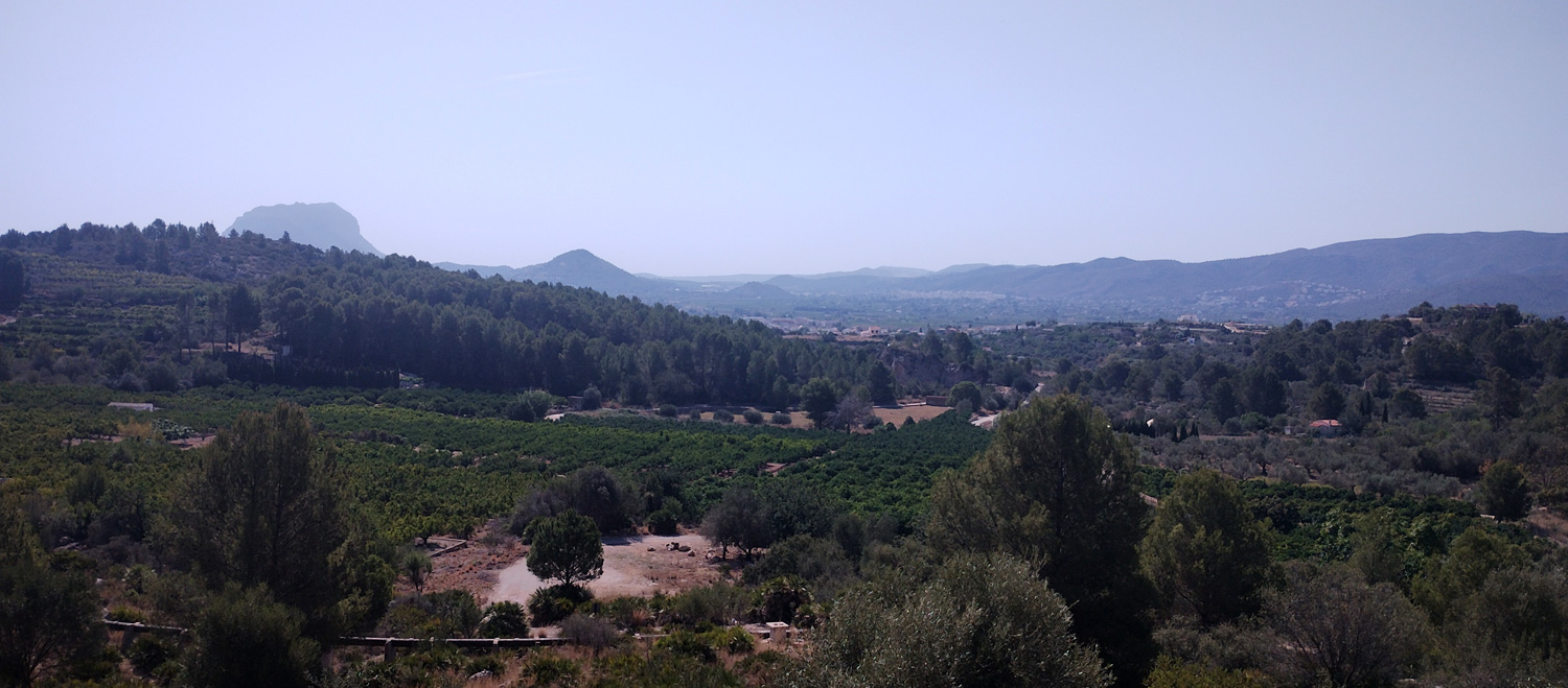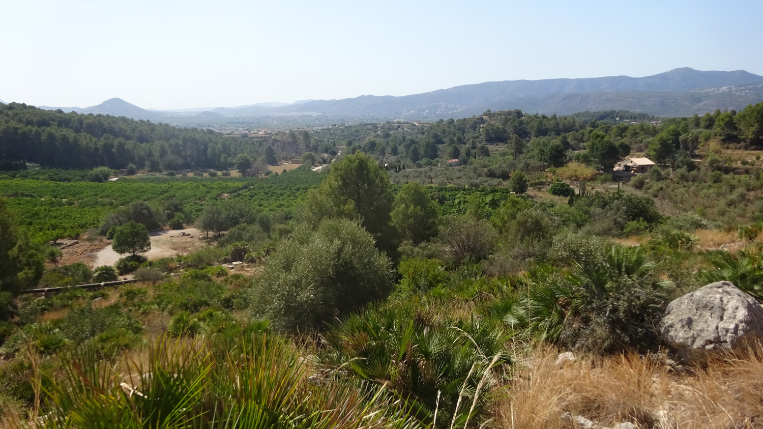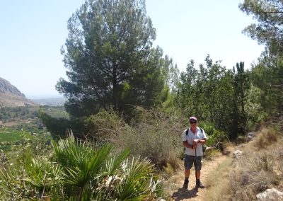 A hot, sweaty walk today up to the saddle from Beniarbeig. It was our hottest walk in a while although some nice sheltered bits coming back down. On the path down, we have often wondered where the path leads to when the path forks off to the right. This time we decided to give it a go and it took us back to the main road, near to the dog in the enclosure.