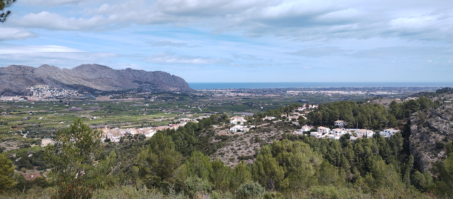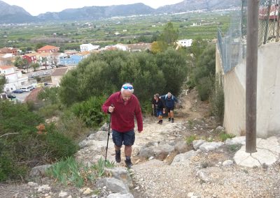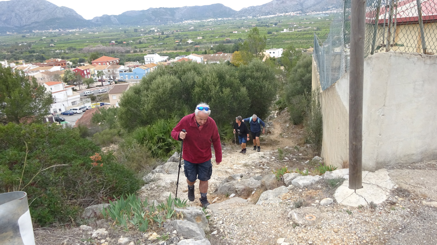 We did the extended version of the Benidoleig walk starting from Bar Ballesta, where we had a coffee before the walk, with an initial climb up and some great views. The weather was pretty cloudy and we got a little rain on the way up but by the end of the walk it had cleared and there was some blue sky again. The walk was 8.13 kms, gain 291m and took 3 hours. Note that the map below is from the last time we did the walk – but is identical to today’s.