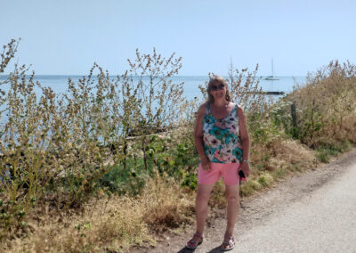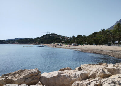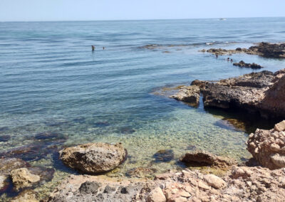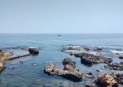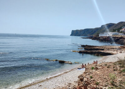 It was definitely too hot to walk in the mountains but we thought it was too soon to do a proper beach walk so decided to do the coastal walk from Denia to Les Rotes. We met for coffee at Jamaica Inn and walked to the end of Les Rotes, where we had a stop for a beer at Ca Nano. We asked for 3 claras with lemon as we do every week, but have never received 3 normal cañas with a plate of lemons before!! We got the waitress to bring us a bottle of Fanta Lemon to add to our drinks but she certainly caused some amusement!
