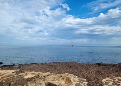 After a week of really heavy rain, it would have been too wet to do a hill walk, so we decided to do the coastal walk from Denia to Les Rotes. We met for coffee at Trucco’s and walked to the end of Les Rotes and back. In all it was around 8km and took about 2 hrs 15 mins. It started raining on our way back, but luckily didn’t come to much. We stopped on the way back for a clara at Helios and then had a nice lunch at Seona.