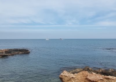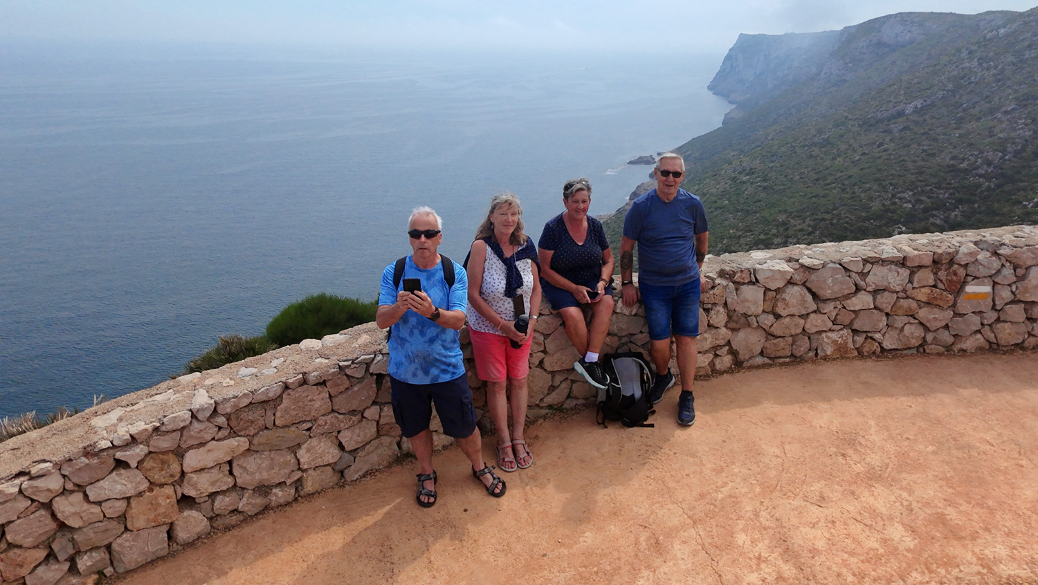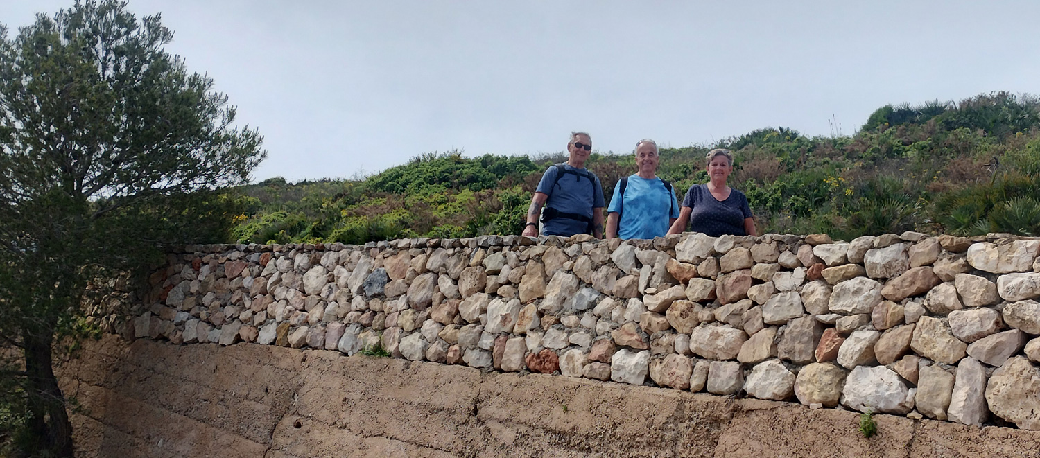 After a couple of gorgeous sunny days this week, we were disappointed that Friday was overcast. There were some sunny spells, but quite a bit of cloud which meant that the photos and video taken by Gareth’s drone (first time using it on a walk) didn’t have the usual lovely blue sky and sea! It was still a nice walk from Tucco’s along past Les Rotes, up to the Torre del Gerro and back. The walk was just under 10km and took around 3 hours.