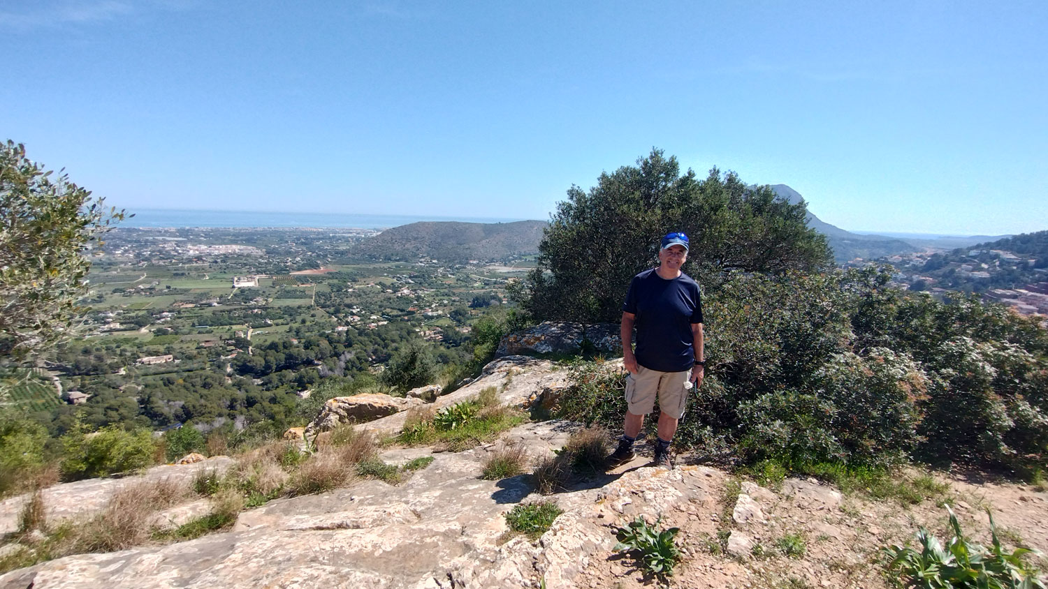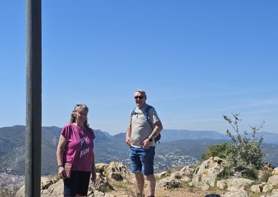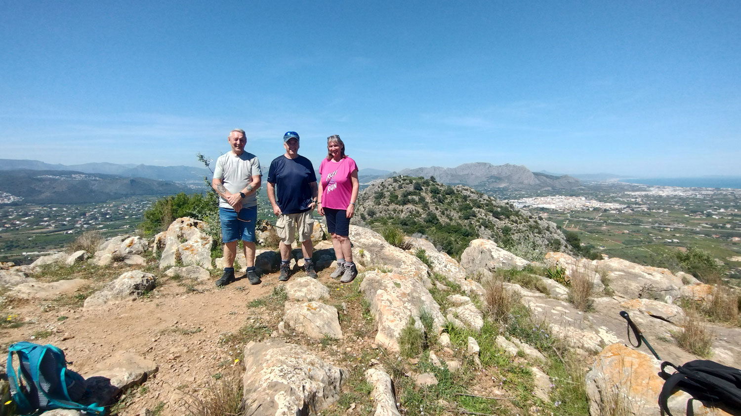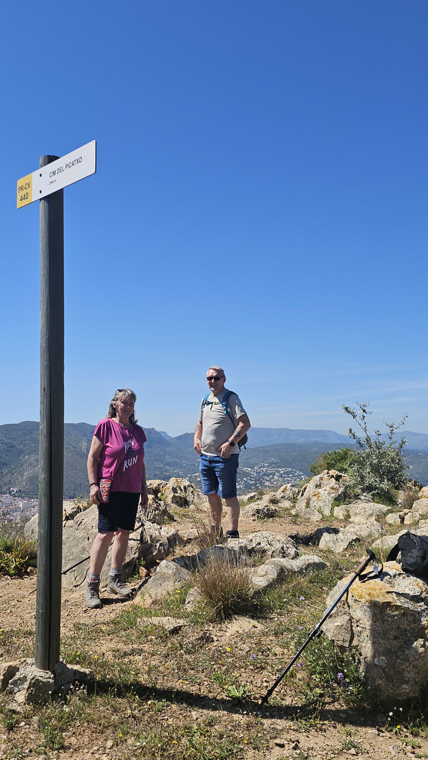 Phil took us on a great walk today, starting at Syncrosfera Hotel at La Sella where we all met for coffee, and hiking up to the top of Pitatxo. It was quite a climb, and a pretty hot day, but it was worth it for the amazing views at the top. Phil hadn’t done this walk since 2023, but the last time Gareth & Anne went up Pitatxo was 2017 when we started the walk in Jesus Pobre. After coming back down the mountain, we walked on the road round some of the urbanisation, before getting back on a track towards the hotel. Total length of the walk was 9.23km and it took 2 hours 50 minutes.