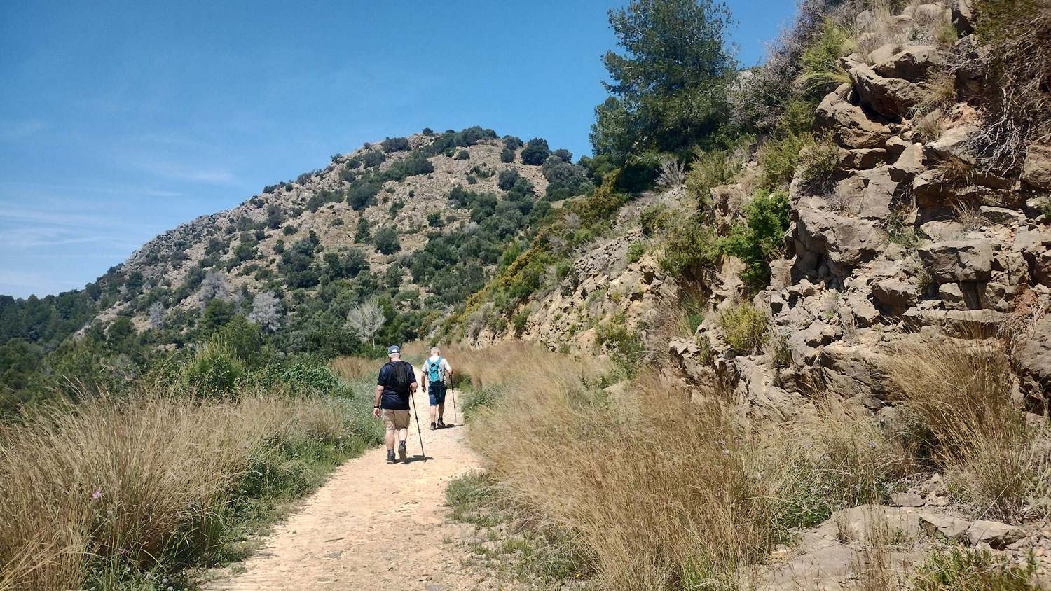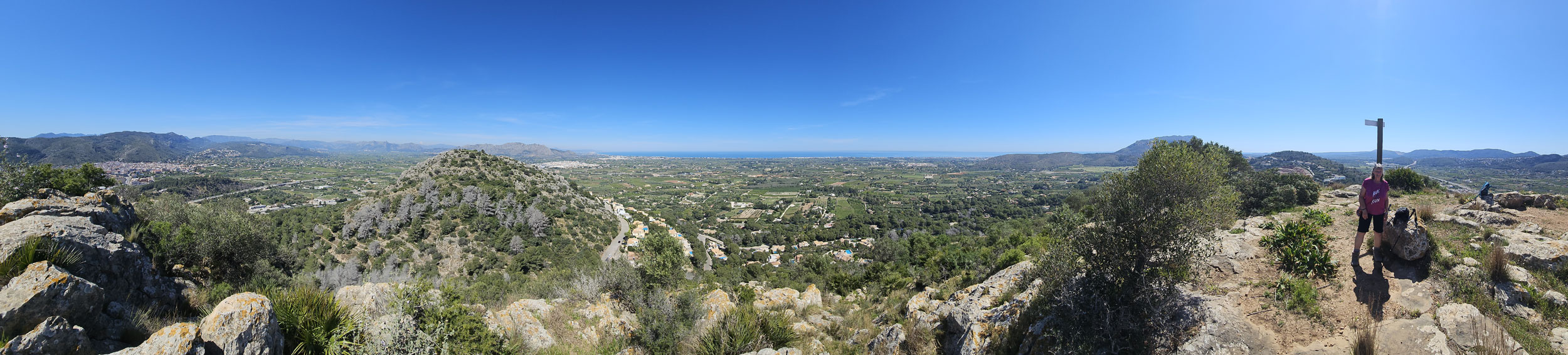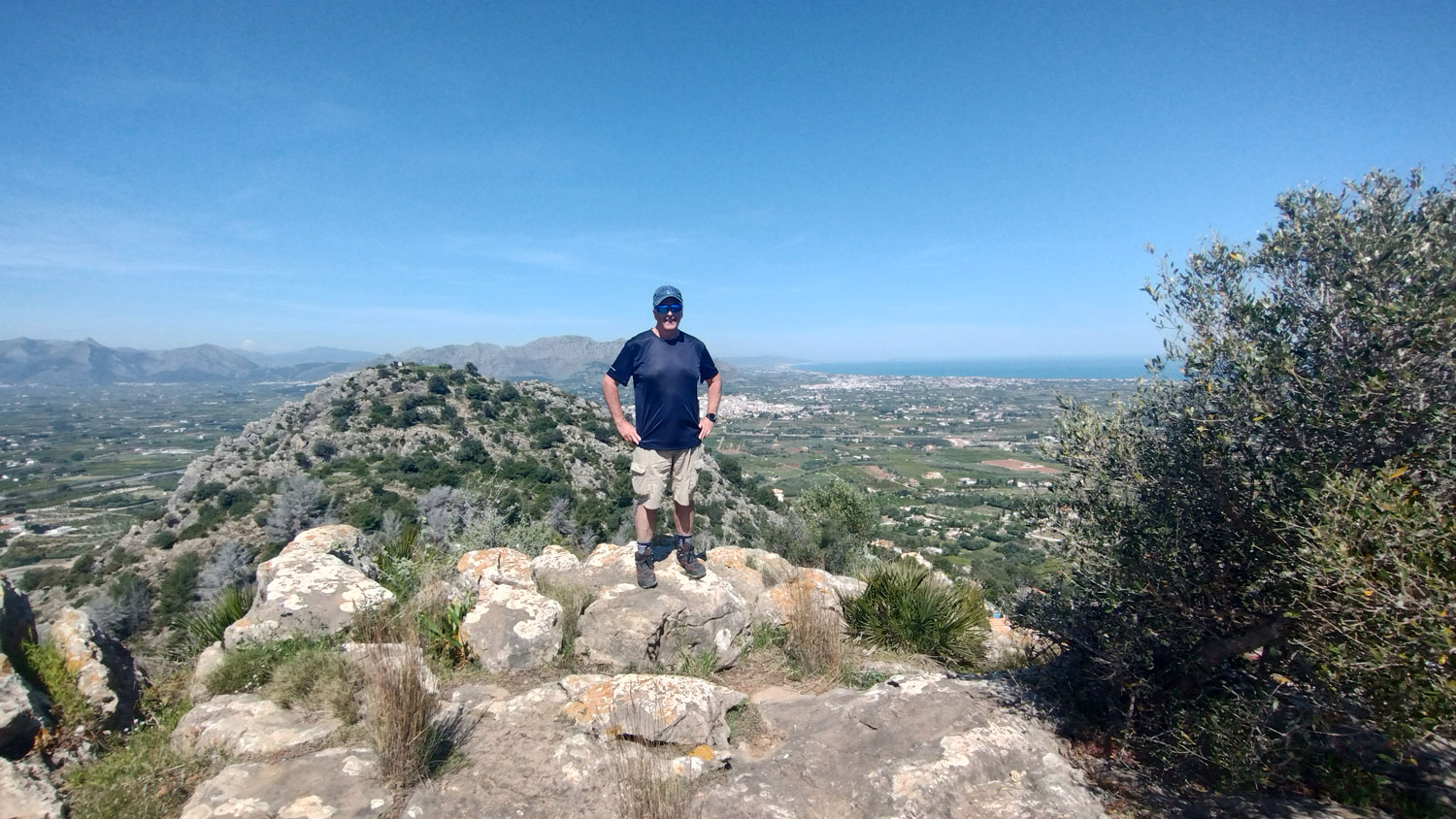 Phil took us on a great walk today, starting at Syncrosfera Hotel at La Sella where we all met for coffee, and hiking up to the top of Pitatxo. It was quite a climb, and a pretty hot day, but it was worth it for the amazing views at the top. Phil hadn’t done this walk since 2023, but the last time Gareth & Anne went up Pitatxo was 2017 when we started the walk in Jesus Pobre. After coming back down the mountain, we walked on the road round some of the urbanisation, before getting back on a track towards the hotel. Total length of the walk was 9.23km and it took 2 hours 50 minutes.
