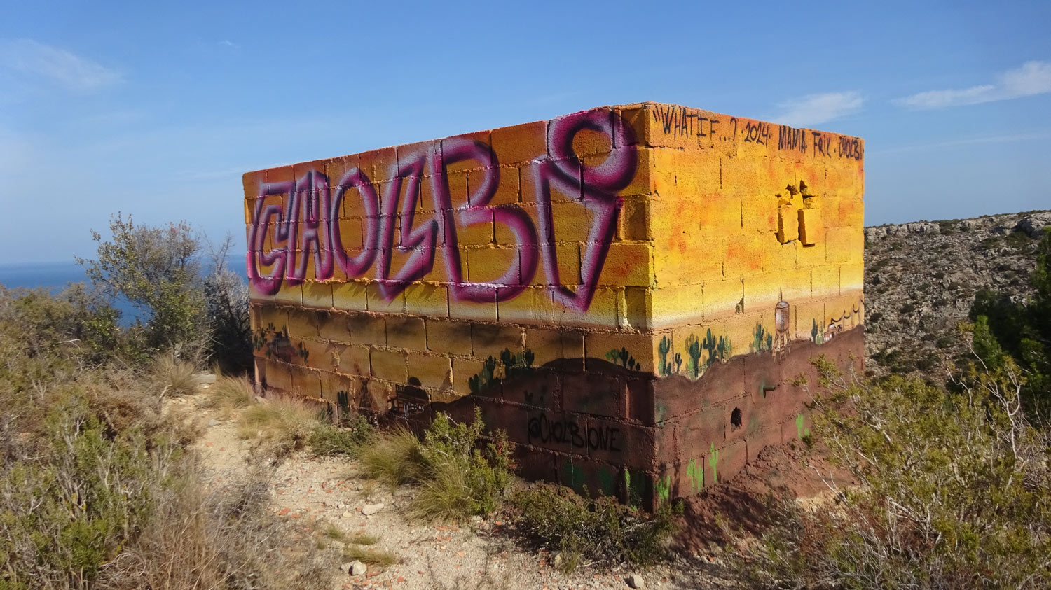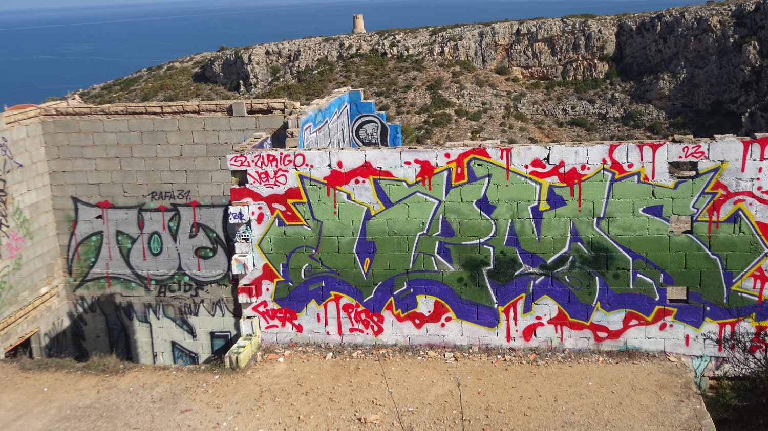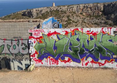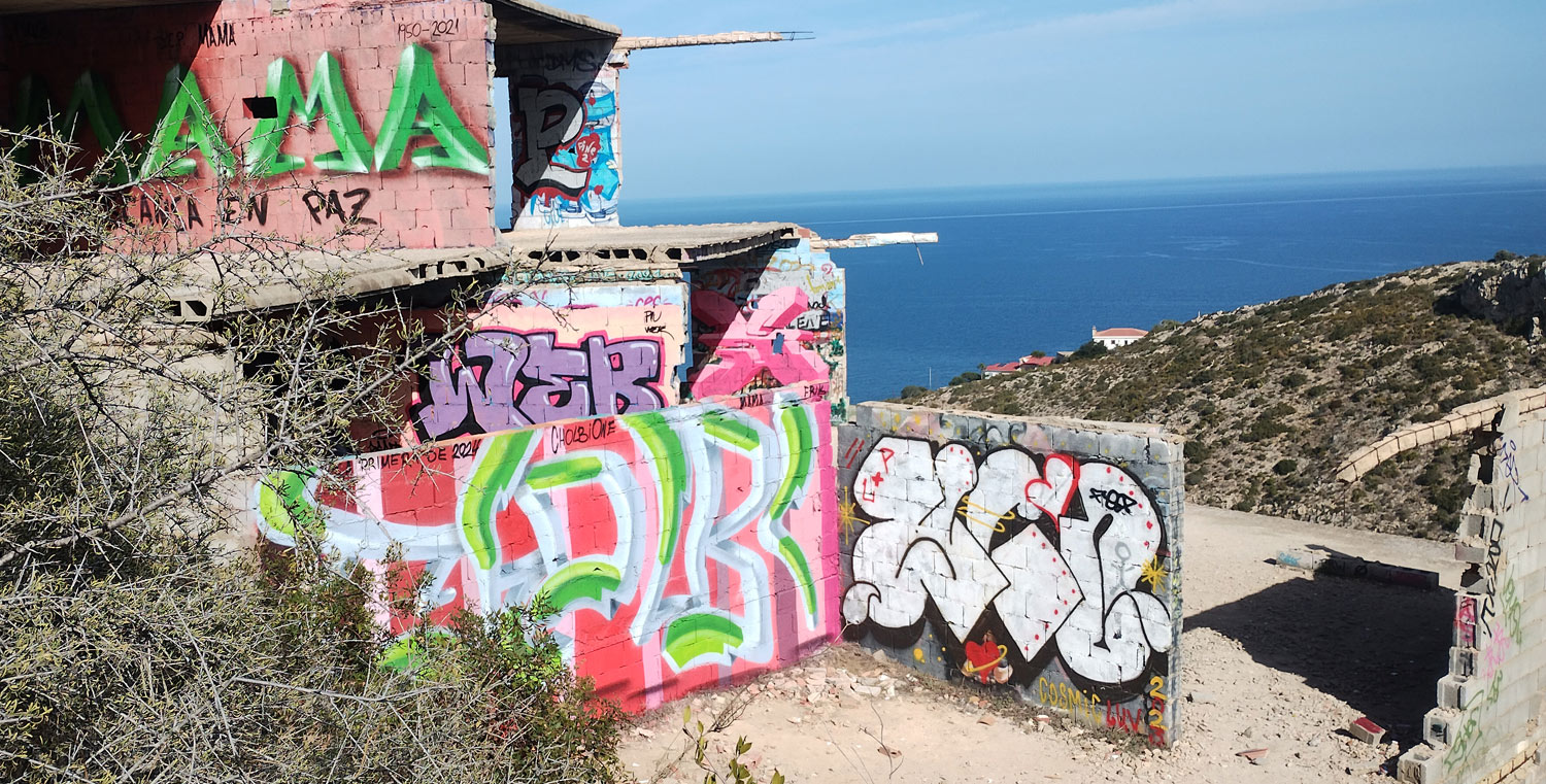 Phil & Freda and Gareth & Anne walked from Les Rotes to the Molins at La Plana and back through the graffiti area and down through the urbanisation Lloma del Cantañar. Length of the walk is 8.21km and took around 2¾ hours. We did this walk on Thursday because rain was forecast for Friday, and we were glad we switched days because it was beautiful – like a summer’s day!