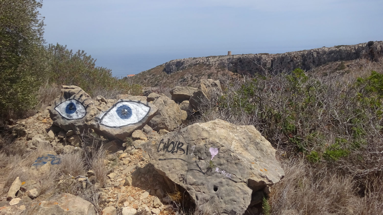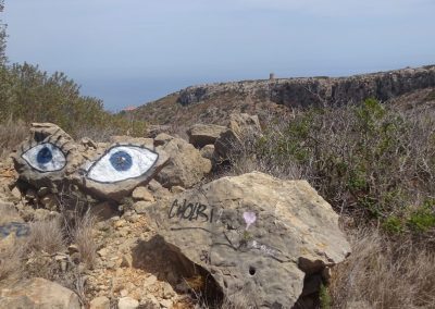 We walked from Les Rotes to the Molins at La Plana and back through the graffiti area and down through the urbanisation Lloma del Cantañar. Length of the walk was 8.21km and it took 2¾ hours. It was a bit overcast but hot, specially on the climb at the beginning!