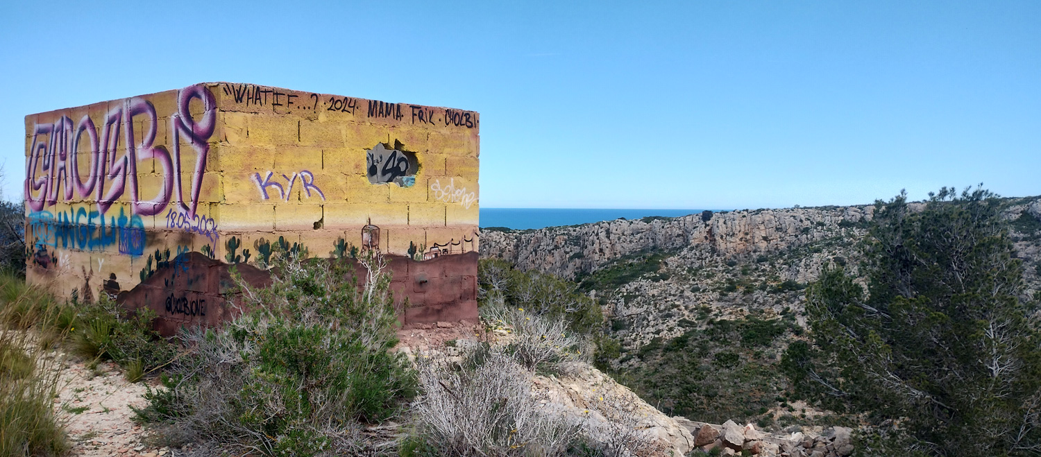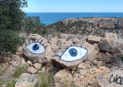 After more rain, and with rain forecast on Thursday and Friday this week, we walked on Wednesday from Les Rotes to the Molins at La Plana and on to the graffiti area. Last time we were there they had closed off the main gate exiting to the urbanisation, but there was still a gap in the fence for us to exit through. No more!! There was no way out, so we had no choice but to head back. Luckily we spotted a path which meant we didn’t have to completely retrace our steps, but it was still a longer than expected walk. Length of the walk was just over 10.5km and it took 3¾ hours, an hour more than usual.
