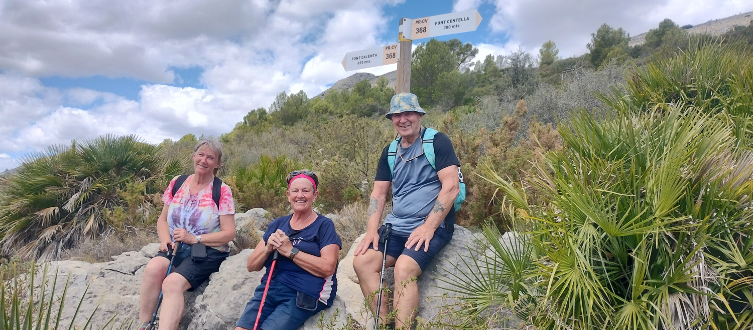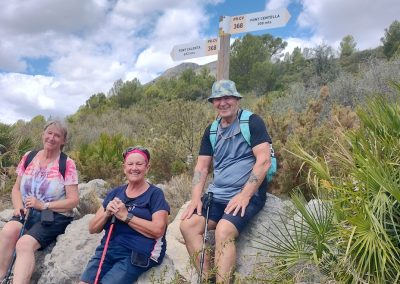 We did the walk from the Piscina Pizzeria car park in Orba today, through La Plana urbanisation and onto the hiking path towards Tormos, leading eventually to the path which goes up to Font Centella. There were quite a lot of clouds around and occasional nice breezes, but it was quite hot on the climb. Great views at the top! We walked up to the finger post but didn’t bother going the whole way to the font.