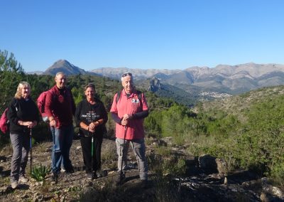 Phil & Freda and Gareth & Anne did the Orba – Seguili walk. We started the walk in Orba after coffee at El Fartet – (Bar Punt was closed) past the newly renovated Font de Dalt to the Seguili Mountain. The start of the walk is a steep climb up to the top then we followed the path round the mountain, past the Orbeta mast, down through the El Aspre urbanisation and back into the village, stopping at Forn Vell for a clara on the way.
