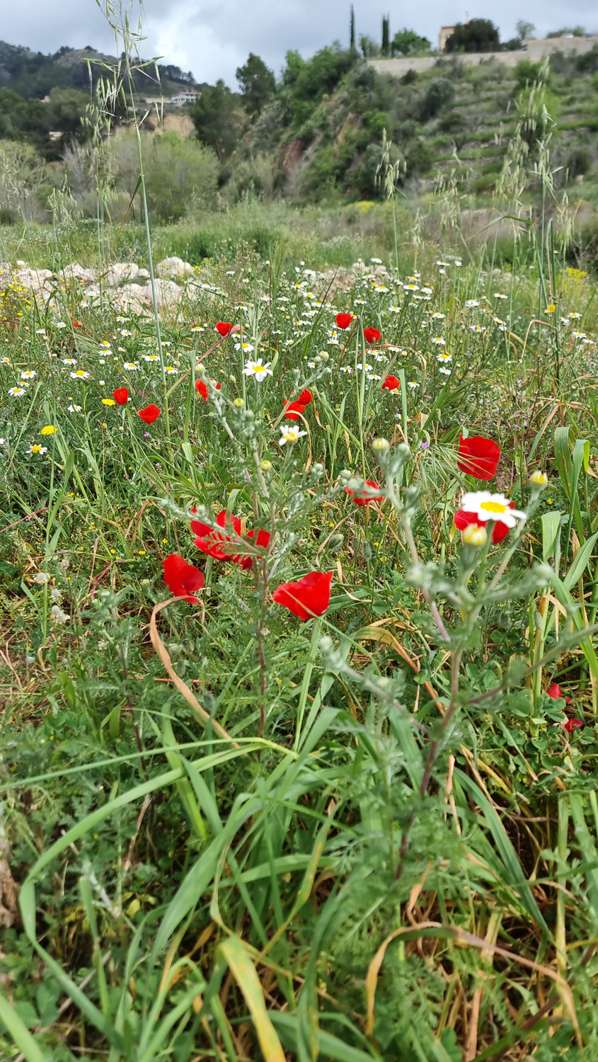 Did the flat walk from Parcent towards Alcalali today. It had been touch and go that we’d be able to walk due to low black clouds first thing, but it stayed dry. The walk was around 7.8km and took just 2 hours. It doesn’t feel very spring like due to the weather, but there were some nice flowers around today.