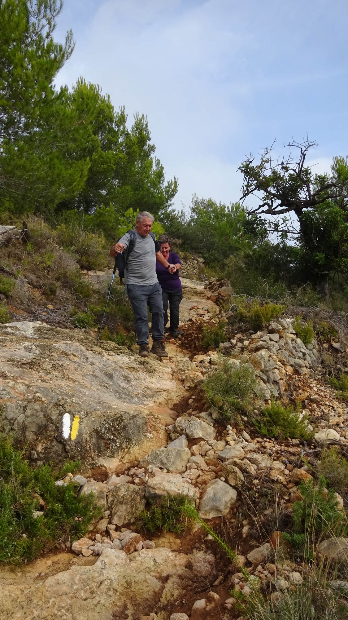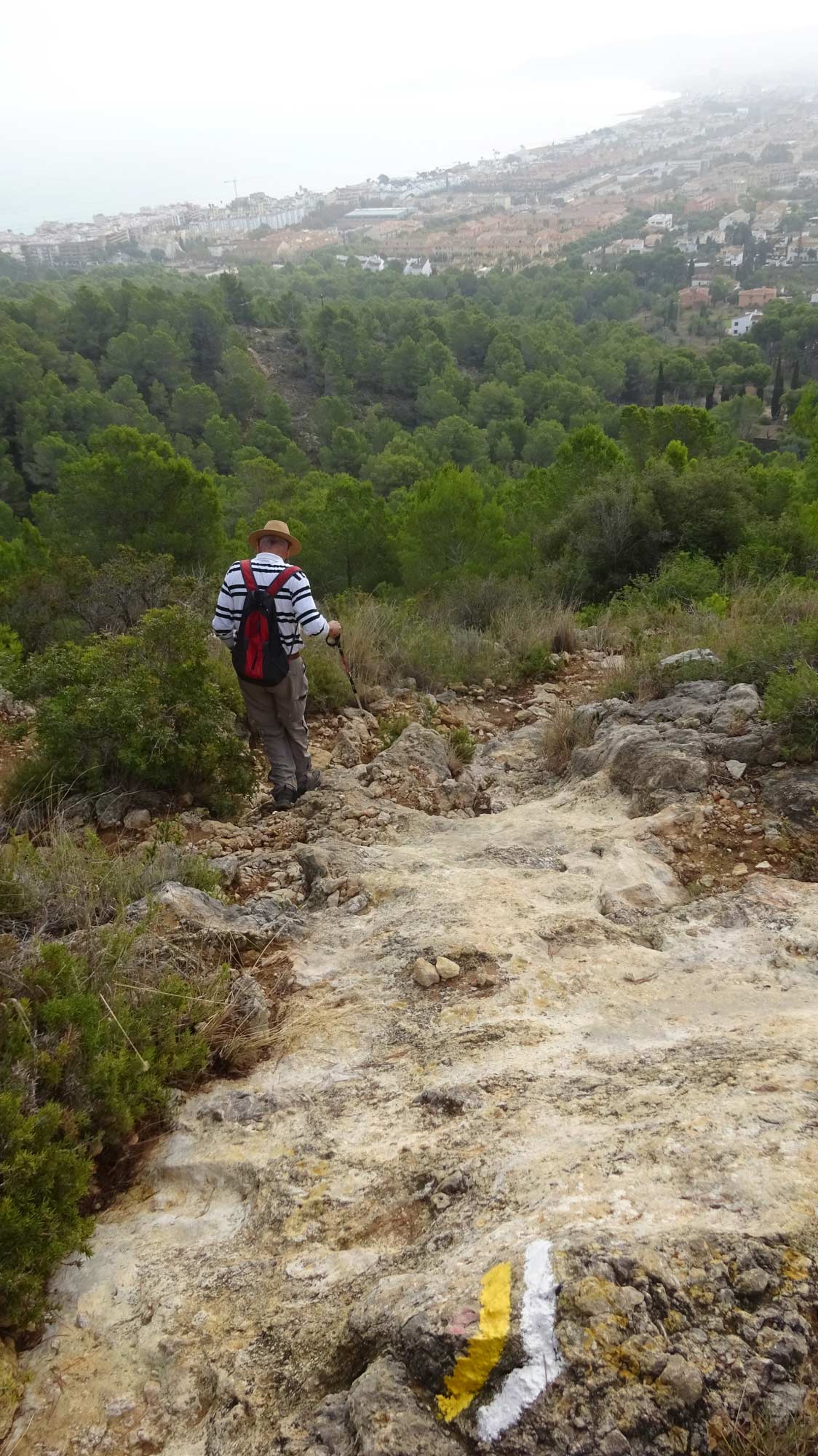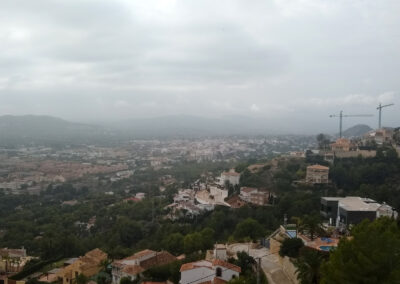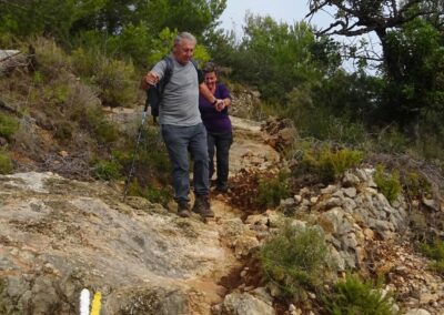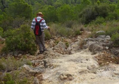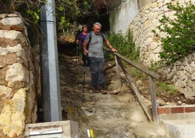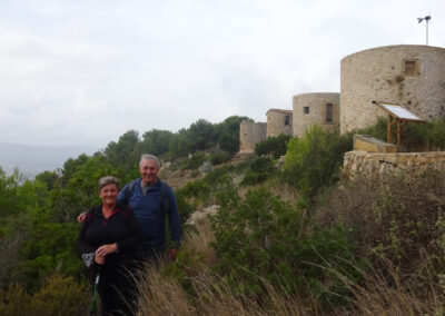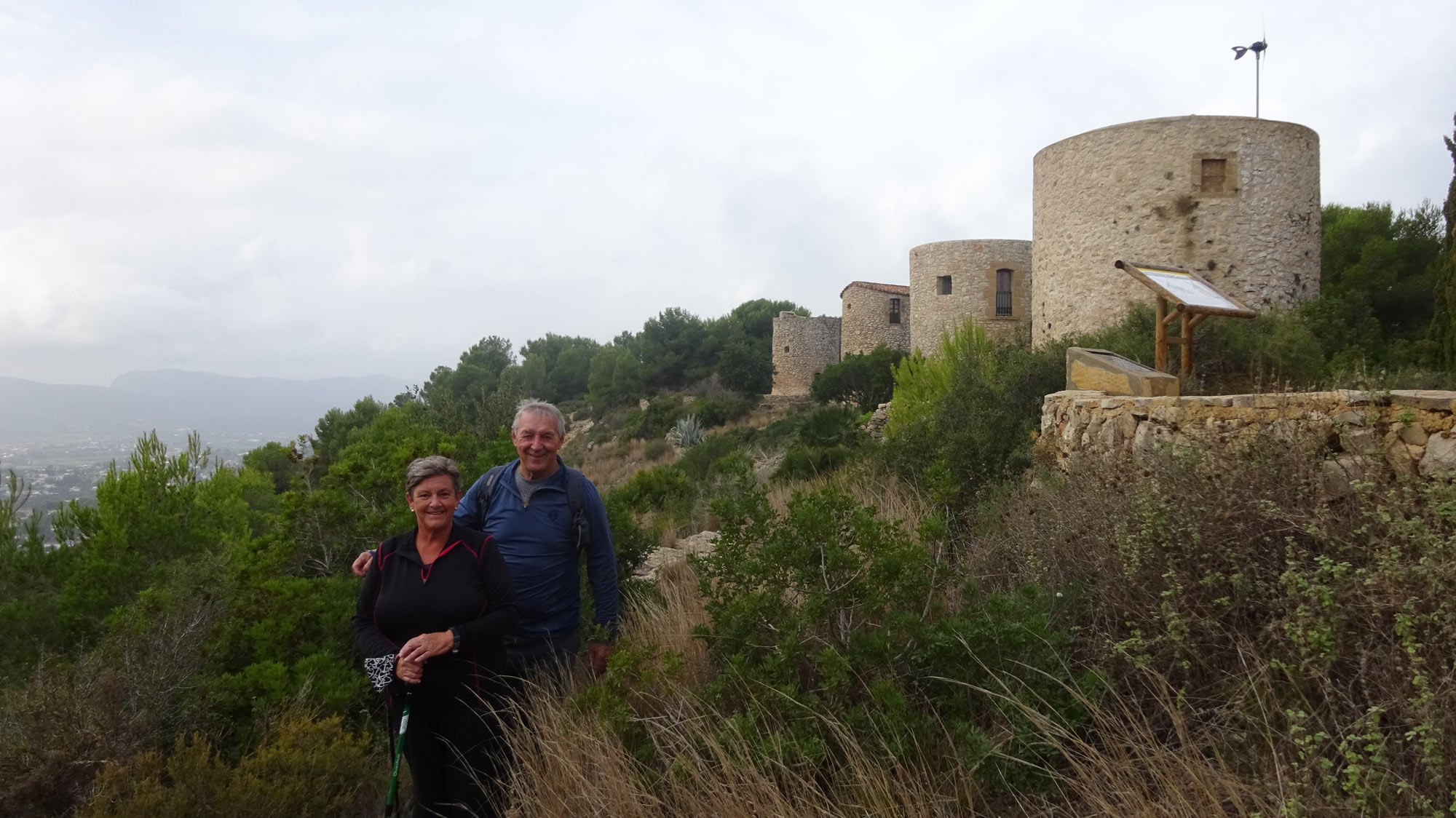 We took a different path down from La Plana which was quite steep and tricky with loose stones – maybe one not to be repeated!! The walk started a bit later because Klaas had a flat tyre, and we were unable to have coffee (and lunch) at Amanecer because it was closed for holidays. We had a coffee at l’Almadrava at Javea Port then decided to walk back up through Urbanisation La Corona because it was a bit shorter and we were concerned about the quality of the path we usually take after 2 days of serious rain. It was a warm but overcast day.